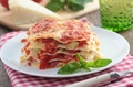 Інгредієнти:Листи для лазаньї - 230г;Ріпчаста цибуля - 2шт (200г);Куряче філе - 700-800г;Шампіньйони - 300г;Томатна паста - 150-200г;Петрушк