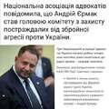 3 березня 2026 року НААУ офіційно повідомила: Андрій Єрмак очолив комітет “із захисту постраждалих від збройної агресії… компенсаційних меха