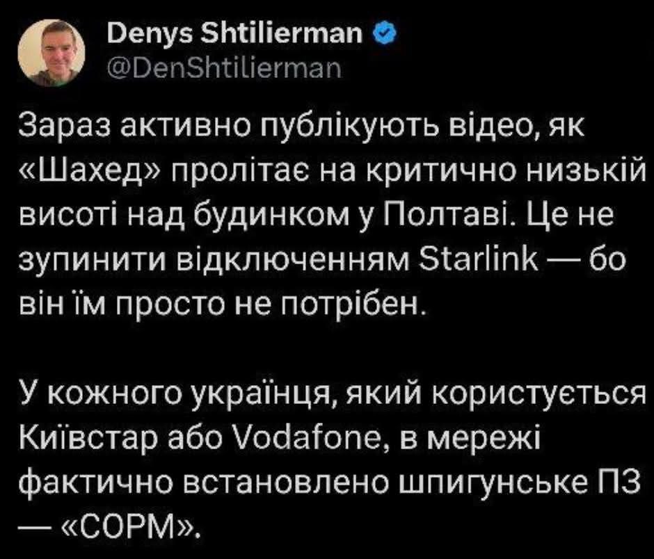 P.S.: Ще крінжовіше, що люту дічь Штілермана намагався м’яко покритикувати “технічний” радник міністра оборони. Але замість цього сам всівся у калюжу невігластва – своїм нерозумінням що таке СОРМ і як воно працює.