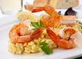 Інгредієнти:400 г довгого рису, 300 г креветок,300 г креветок,1 цибулина,1 болгарський перець,2 помідори,чверть лимона,50 мл оливкової олії,