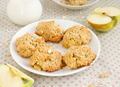 Інгредієнти:400 г яблук,100 г вівсяних пластівців,50 г горіхів (волоські, мигдаль, фундук),пів лимона,30 г вершкового масла,1 ст. ложка олії