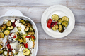 Інгредієнти:Кабачки - 2 шт.Перець солодкий - 1 шт.Великий помідор - 1 шт.Щавель - 1 пучокЦибуля зелена - 1 пучокБорошно - 2 ст. л.Олія росли