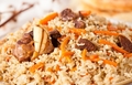 Інгредієнти:700 г свинини,180 г рису,2 цибулини,1 морква,4 зубки часнику,2 ст. ложки олії,пучок кінзи,1 ст. ложка барбарису,спеції: червоний