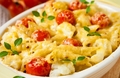Інгредієнти:300 г м'ясного фаршу,200 г макаронів,200 г помідорів,300 г цвітної капусти,1 цибулина,пучок зелені,100 г твердого сиру,1 яйце,2