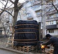 Це - Донецьк. Це там тепер зимою діжки з водою підігрівають за допомогою буржуйок. На дворі - перша чверть 21 сторіччя.Це той самий Донецьк,