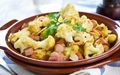 Інгредієнти:600 г цвітної капусти400 г свинини1 цибулина2 зубчики часникупучок петрушкипів-лимоналавровий листдухмяний перецьмелений чорний