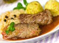 Інгредієнти:500 г свинини (філе),400 г печериць,1 цибулина,3 ст. ложки борошна,олія,спеції за смаком (базилік, орегано, коріандр, майоран, ч