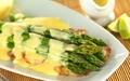 Інгредієнти:500 г спаржі,200 г вершкового масла,3 яєчні жовтки,2-3 пера зеленої цибулі,пів лимоначорний мелений перець за смакомцукор за сма