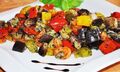 Інгредієнти:баклажани - 3 шт.,морква - 3 шт.,болгарський перець (різного кольору) - 2 шт.,рослинна олія - 0,5 склянки,оцет (5 %) - 1 склян