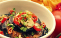 Інгредієнти:баклажани - 1-2 шт.,помідори - 2-3 шт.,яйця (варені) - 2 шт.,сир - 50 г,часник - 1 зубець,соєвий соус - 1 ст. ложка,йогурт (знеж