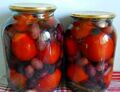 Інгредієнти:помідори - скільки знадобиться на 1 трьохлітрову банкувиноград - 2 галузки,базилік - 2 гілочки,м'ята - 2 гілочки,часник - 3 зубц