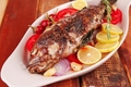 Інгредієнти:Риба (філе) 2 шт.Помідори червоні 1 шт.Перець болгарський 2 шт.Цибуля ріпчаста 2 шт.Часник 2 зубчикиСпосіб приготування:Овочі на