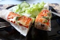 Інгредієнти:лаваш - 3-4 шт.,куряче філе - 400 г,шампіньйони - 350 г,сир - 100 г,цибуля - 1 шт.,сметана - 200 г,томатна паста - 2 ст. ложки,о