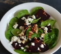 Інгредієнти:буряк варений : 1 штшпинат: 150 гбринза: 50 голивкова олія: 30 млгірчиця французька в зернах : 1 ч. ложкагоріхи волоські : 1 ст.