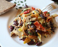 Інгредієнти:шампіньйони - 250 г,червона квасоля у власному соку - 1 банкацибуля - 1 шт.,перець пеперончино - 6-7 шт.,морква - 1 шт.,гірчиця