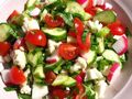 Інгредієнти:редиска: 1 пучокцвітна капуста: 500 гогірки: 300 гпомідори чері : 300 гсвіжа петрушка: 1 пучокзелена цибуля: півпучкаоливкова ол