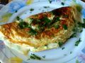 Інгредієнти:яйця - 3 штмоцарелла - 50 гзелена цибуля - 1 штвершки - 50 млзелень кропу і петрушки - для посипаннявершкове масло - для смаженн