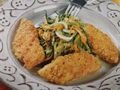 Інгредієнти:філе морської риби: 750 гяйця: 2 шт.лимон: 1 шт.борошно: 100 ггрецькі горіхи (чищені): 50 гпанірувальні сухарі : 50 голія соняшн