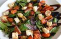 Інгредієнти:філе слабосоленого лосося - 100 гпомідори черрі - 6-7 штдомашні сухарики з часником - за смакомлистя салату - велика жменянасінн