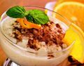 Інгредієнти:рис - 50 гмед - 4 ст. ложкиапельсин (або лимон) - 1 штмолоко - 3 склянкивершки - 150 млмелена кориця - 1 ч. ложкалисточки м'яти