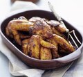Інгредієнти:курячі крильця: 6 штчасник: 6 зубцівсоєвий соус: 5 ст. ложоколивкова олія: 2 ст. ложкицукор: 2 ст. ложкичорний мелений перець та
