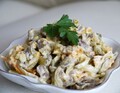 Інгредієнти:яловичина варена: 250 гтвердий сир: 100 гцибуля зелена: пів пучкамайонез, чорний мелений перець та сіль : за смакомСпосіб пригот