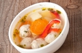 Інгредієнти:для супу:1,5 л води.3 картоплини,1 цибулина,1 морква,1 білий корінь,1 болгарський перець,невеликий пучок зелені,2 лаврових листа