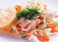Інгредієнти:300 г капусти,1 морква,1 цибулина,0,5 лимона,зелень (кріп, петрушка),3 ст. ложки оливкової олії,2 ст. ложки цукру,сіль за смаком