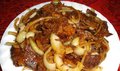 Ингредиенты:Свинина (корейка) — 500 гЛук — 2 шт.Горчица — 2-3 ч.л.Соль, перец, имбирь — по вкусуМука — 3ст.л.Приготовление: Мясо нарезаем к