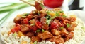Ингредиенты:Курица — 1 кгПомидор — 2 штПерец болгарский — 2 штЛук — 1 штДля маринада:Томатная паста — 2 ст.л.Табаско (соус) — 2 ч.л.Горчица