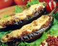 Ингредиенты:баклажаны — 2 шт.помидор — 1 шт.лук — 1 шт.сыр твёрдых сортов — 50 гморковь — 1 шт.зелень для подачи — 20 грис отварной — 0,5