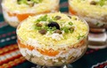 Ингредиенты:печень трески — 1 банка 250гсыр плавленый — 100 гяблоко — 1 шт.лимонный сок — по вкусукартофель — 3 шт.яйца — 3 шт. морковь — 1