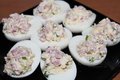 Ингредиенты (на 12 штук):яйца вареные — 6 штукпармезан тертый — 2 ст.л.ветчина — 100 гзеленый лук — 4-5 перьевмайонез — 1 ст.л.соль и моло