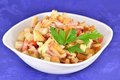 Ингредиенты:ветчина — 300 г,сыр — 200 г,яйца вареные — 4 штуки,1 упаковка картофельных чипсов,помидоры — 3 штуки,чеснок — 2 зубчика,майоне