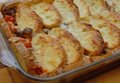 Ингредиенты:1 батон хлеба,350 грамм мясного фарша,2 стакана нарезанных кубиками грибов,6 помидоров,1 болгарский перец,2-3 зубочка чеснока,ба