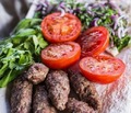 Ингредиенты: - Жирная баранина — 500 г - Репчатый лук — 1 шт. - Молотый тмин, соль, черный перец — по вкусу - Зелень — для подачи Приготовл
