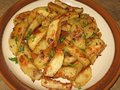 Ингредиенты:Картофель – 1 кгЧеснок – 3 зубчикаЛук – 1Душица сушеная – 0,5 чайной ложкиСладкая паприка – по вкусуЧерный молотый перец – по вк