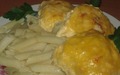 Ингредиенты:Куриный фарш — 400 гОтваренный рис — 100 гЛук — 1 шт.Молоко — 3 ст.л.Яйцо — 1 шт.Соль, перецДля соуса:Сыр- 50 гСливки 20% — 150
