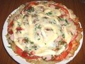 Ингредиенты:колбаса или куриное мясо — 150 гкартофель — 4 больших штукипомидоры — 2 штукимайонезмука — 2 ст.л.соль перец по вкусу, зеленьсыр