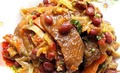 Ингредиенты:Говядина б/к — 800 гр,1 луковица,1 баночка красной фасоли,1 небольшой вилок капусты,1 крупная морковь,1 красный болг.перец,4 дол