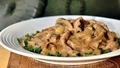 Ингредиенты:Телятина — 500 гШампиньоны — 250 гСливки 30-35% — 200 гЛук — 2 шт.Бульон — 500 млВино белое сухое — 250 млРастительное масло — 2