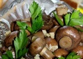 Ингредиенты:шампиньоны — 1 кгчеснок — 4 зубчикалавровый лист — 4 штукигвоздика — 5 штукперец горошком — 10-12 штукуксусная эссенция — пол ча