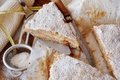 Ингредиенты:Манка — 1 стаканМук — 1 стаканаСахарный песок — 1 стаканРазрыхлитель — 1 ч. л.Корица — 1 ч. л.Крахмал — 2 ч. л.Яблоки (кисленьки