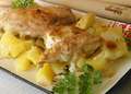 Ингредиенты:Курица — 1 кгКартофель — 800 граммЛук — 1 головкаЧеснок — 2 зубчиковМайонез — 150 граммСметана — 150 граммСоль по вкусуСпеции по