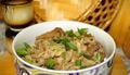 Ингредиенты:макаронные изделия — 300 граммпечень — 500 граммсметана — 5 ст.л.морковь — 1 штукалук — 1 штукасоль и специи — по вкусураститель