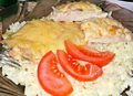 Ингредиенты: Филе куриное — 6 штукСметана — 3-4 ст. л.Чеснок — 3-4 зубчика.Свежая зелень по желаниюСыр — 300 граммЯйцо — 1 штукПомидоры 1-2