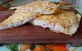 Ингредиенты:лист армянского лаваша,мягкий плавленый сыр,крабовые палочки,яйца,зелень укропа,мука,масло подсолнечноечеснок.Приготовление:1. Н