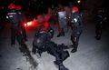Около сотни фанатов футбольного клуб «Спартак» пытались спровоцировать беспорядки у стадиона Сан Мамес в испанском Бильбао.По данным газеты