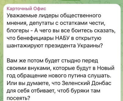 Наймають для цього безпринципних російськомовних потвор, які у кремлівському стилі портнова продовжують сіяти ненависть - між українцями, між Україною і партнерами, між фронтом і тилом…